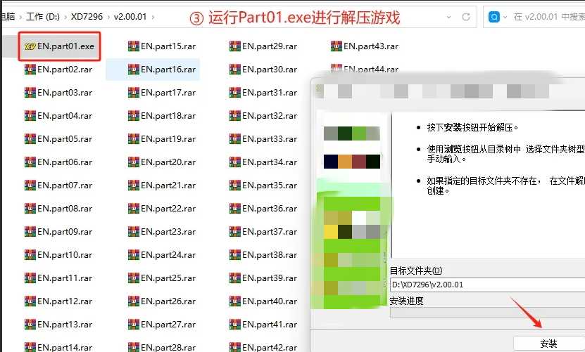 如何解压教程1:运行Part01.exe进行解压游戏,静静等待解压完毕即可!切记不要任意对其它分卷包右键乱解压,必须运行Part01.exe解压的才是完整的